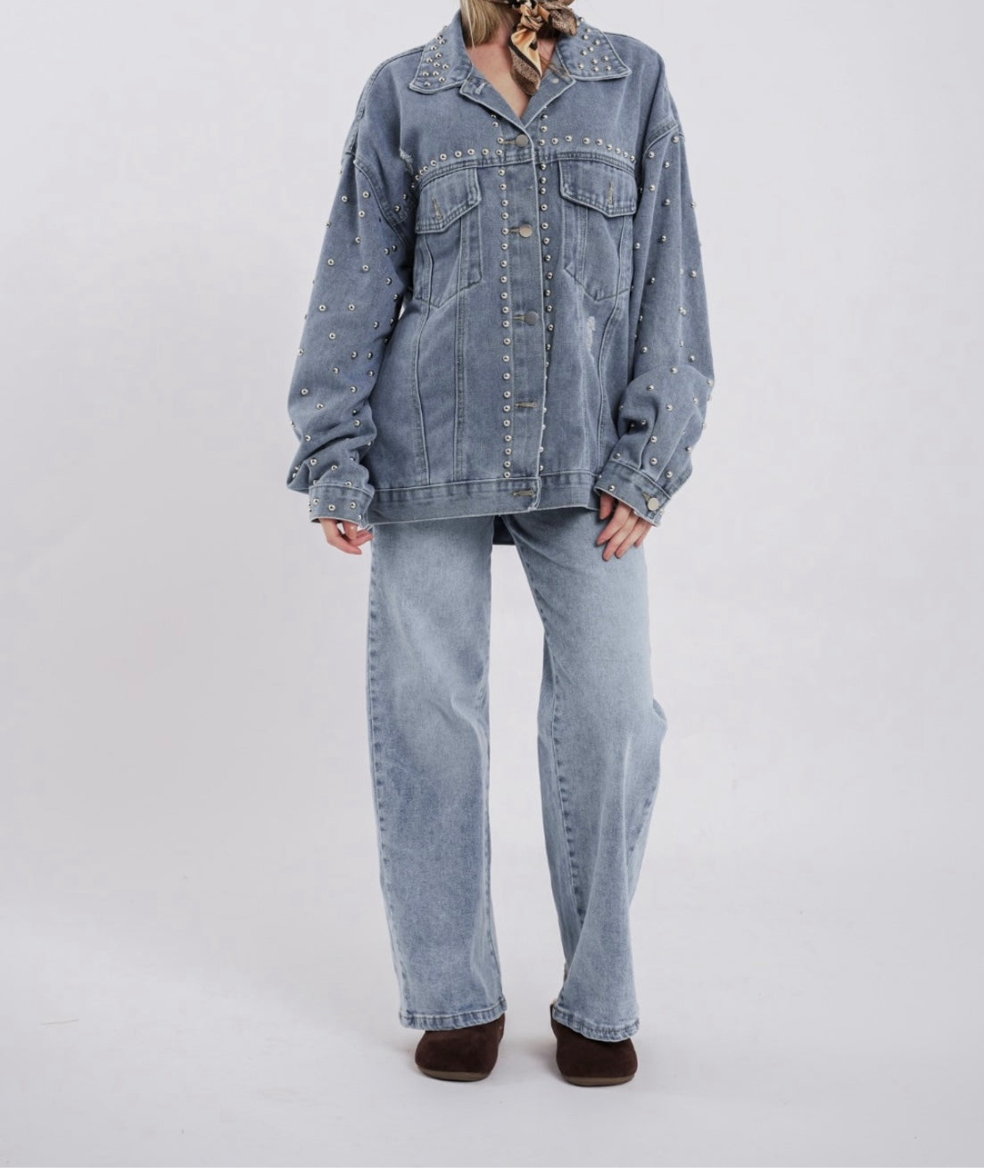 Campera de Jean con apliques metálicos. Las tachas metálicas le dan el toque para hacer de tu outfit un 10